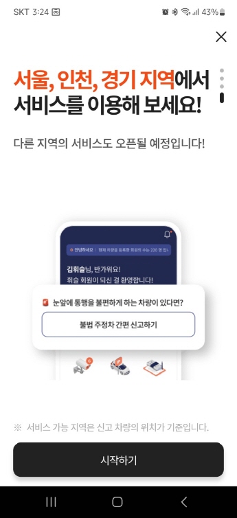 서울, 인천, 경기 지역에서 불법 주정차 간편 신고할 수 있습니다. 신고 내용을 당사자에게 통보해서 즉각 조치하는 편리한 방법입니다.